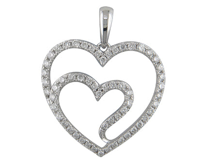 14K White Gold Diamond Double Heart Pendant