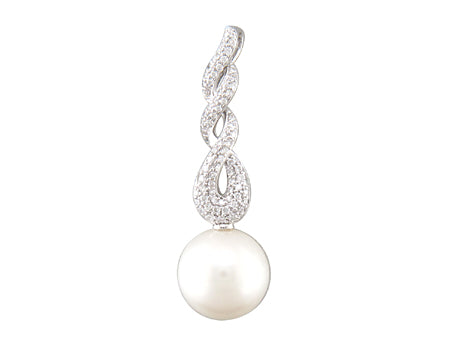 10K White Gold Pearl with Diamond Twist Accent Pendant