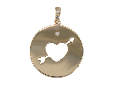 10K Yellow Gold Diamond Heart & Arrow Coin Pendant