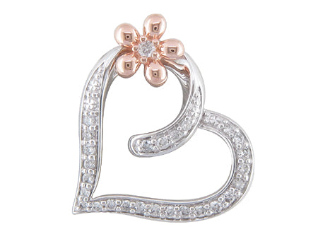 14K White & Rose Gold Diamond Floral Heart Pendant