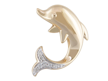 10K Yellow & White Gold Diamond Dolphin Pendant