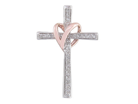 10K White & Rose Gold Diamond Heart Cross Pendant