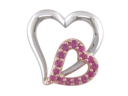14K White & Rose Gold Pink Sapphire Double Heart Pendant