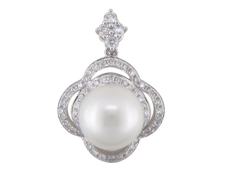 10K White Gold Pearl with Diamond Halo Pendant