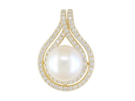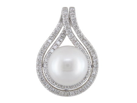 14K White Gold Pearl & Diamond Pendant