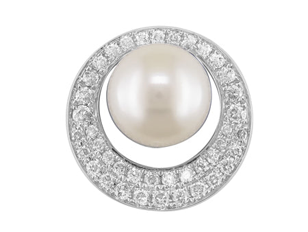 14K White Gold Pearl with Diamond Halo Pendant