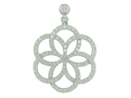 14K White Gold Diamond Floral Medallion Pendant