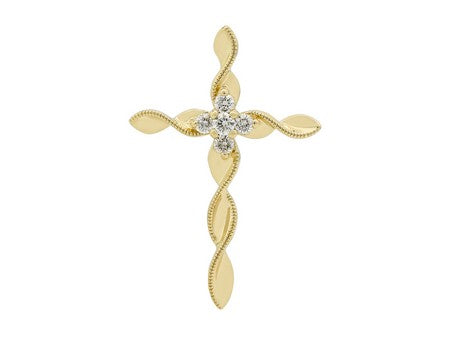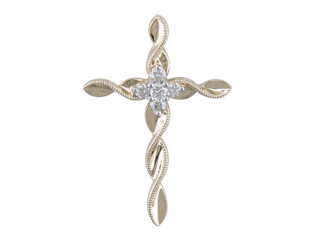 10K Yellow Gold Twisted Diamond Cross Pendant
