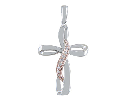 14K Two Toned Rose & White Gold Diamond Cross Pendant