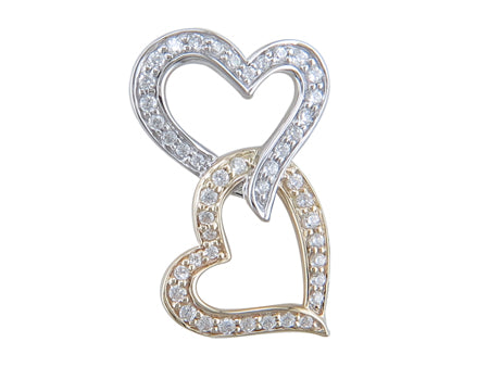 10K Yellow & White Gold Diamond Double Heart Pendant