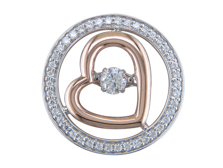 10K Rose & White Gold Dancing Diamond Heart Pendant