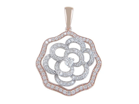 14K White & Rose Gold Diamond Floral Medallion Pendant