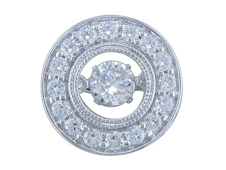 14K White Gold Dancing Diamond with Diamond Halo Pendant