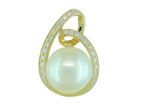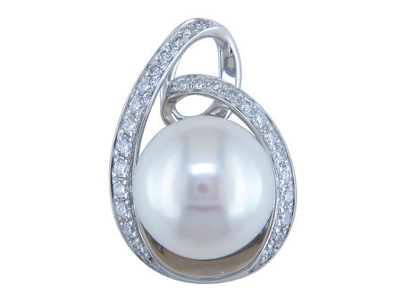 14K White Gold Pearl & Diamond Pendant