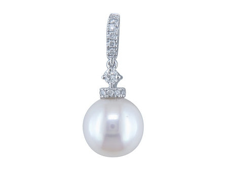 14K White Gold Pearl with Diamond Accent Pendant