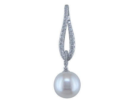 14K White Gold Pearl with Diamond Accent Pendant