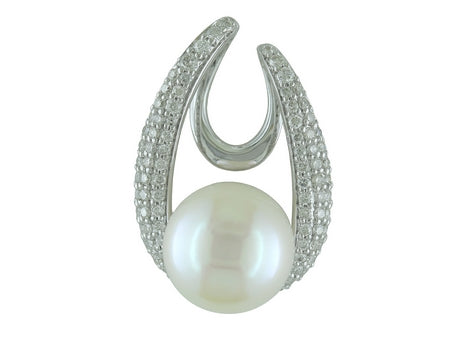 14K White Gold Pearl with Diamond Halo Pendant
