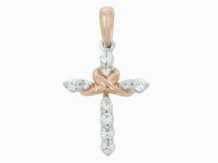 10K White & Rose Gold Diamond Cross with Ribbon Pendant