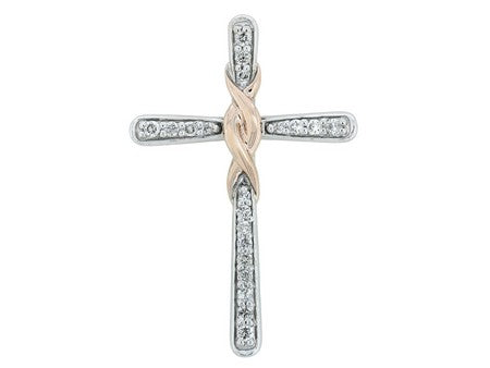 10K Two Toned White & Rose Gold Diamond Cross Pendant