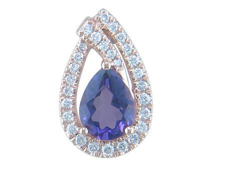 18K Rose Gold Amethyst with Diamond Halo Pendant
