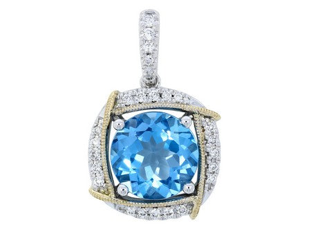 18K White & Yellow Gold Blue Topaz with Diamond Halo Pendant