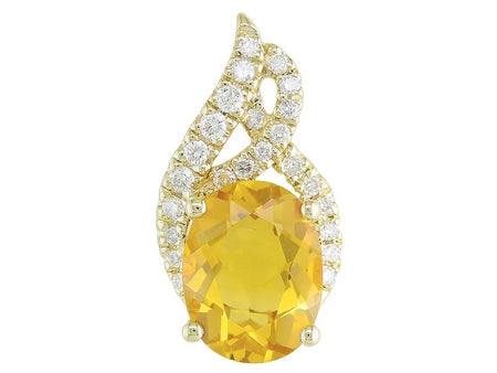 14K Yellow Gold Citrine with Diamond Accent Pendant