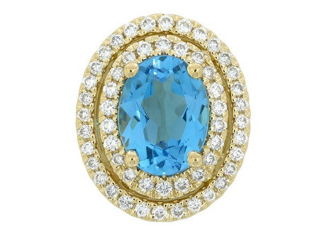 18K Yellow Gold Blue Topaz with Diamond Double Halo Pendant