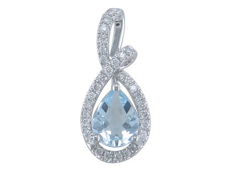 10K White Gold Aquamarine with Diamond Halo Pendant