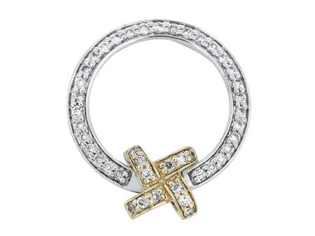 14K White & Yellow Gold Diamond with Knot on Circle Pendant