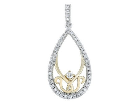 14K White & Yellow Gold Diamond with Scrollwork Pendant