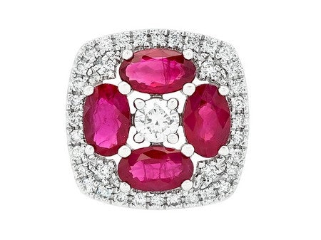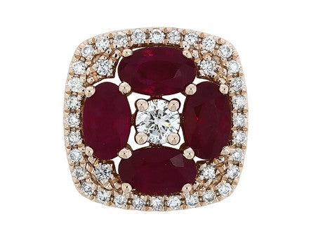 14K Rose Gold Ruby & Diamond Halo Pendant