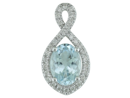 14K White Gold Aquamarine with Diamond Accent Pendant