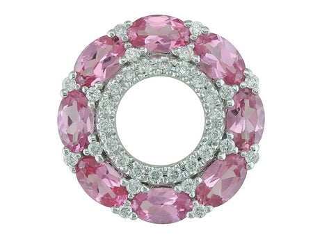 14K White Gold Pink Spinel and Diamond Circle Pendant
