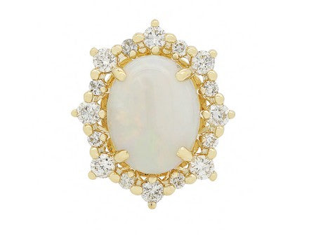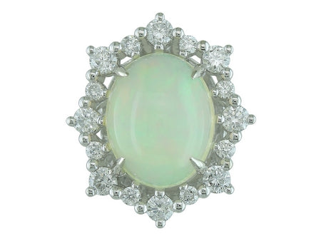 14K White Gold & Black Rhodium Opal & Diamond Halo Pendant