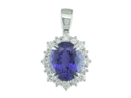 18K White Gold Tanzanite & Diamond Halo Pendant