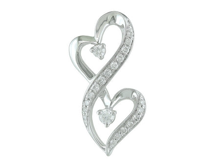 10K White Gold Diamond Double Heart Pendant