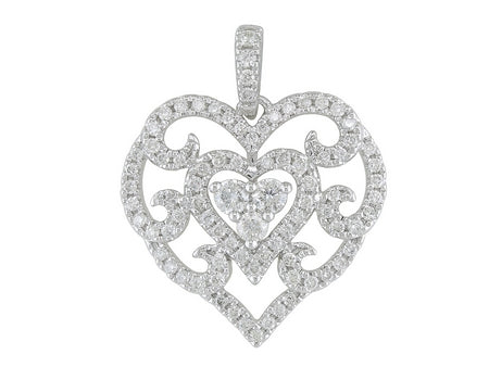 14K White Gold Diamond Heart Pendant