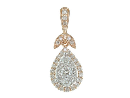 14K Two Toned White & Rose Gold Cluster Diamond Pendant