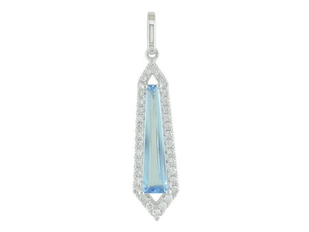 14K White Gold Elongated Elegance North South Set Tapered Blue Topaz with Diamond Halo Pendant