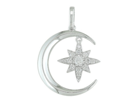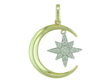 14K Two Toned Yellow & White Gold Moon & Star Diamond Pendant