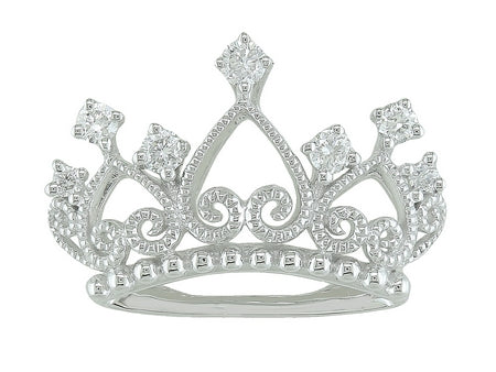 14K White Gold Diamond Crown Pendant