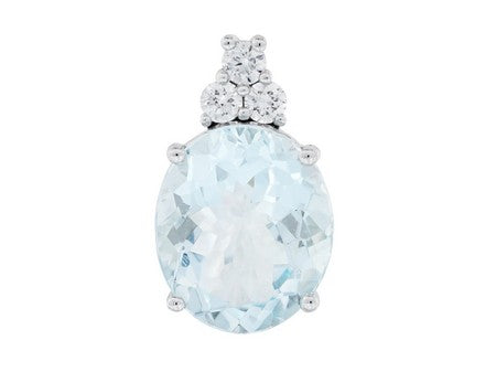14K White Gold Aquamarine with Diamond Accent Pendant