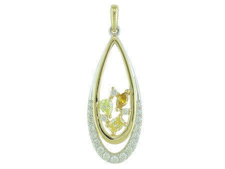 14K Two Toned Yellow & White Gold Fancy Colored Diamond Pendant