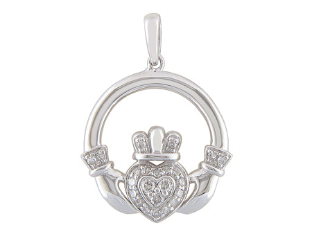 14K Rose Gold with White Rhodium Diamond Claddagh Pendant