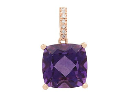 14K Rose Gold Amethyst with Diamond Accent Pendant
