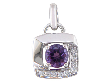 10K White Gold Amethyst & Diamond Accent Pendant