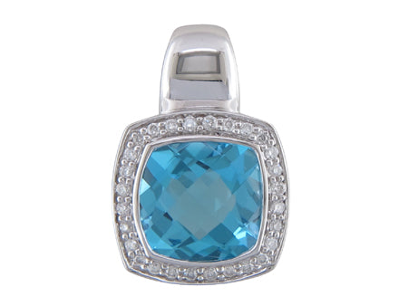 10K White Gold Blue Topaz with Diamond Halo Pendant
