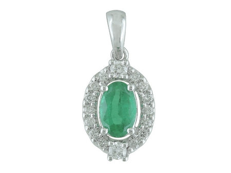14K White Gold Emerald & Diamond Halo Pendant