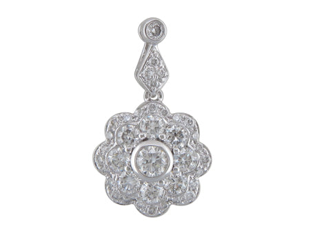 14K White Gold Bezel Set Diamond Floral Pendant