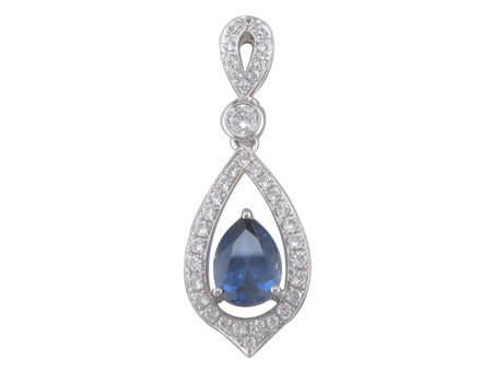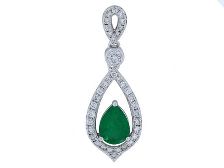 14K White Gold Emerald with Diamond Frame Pendant